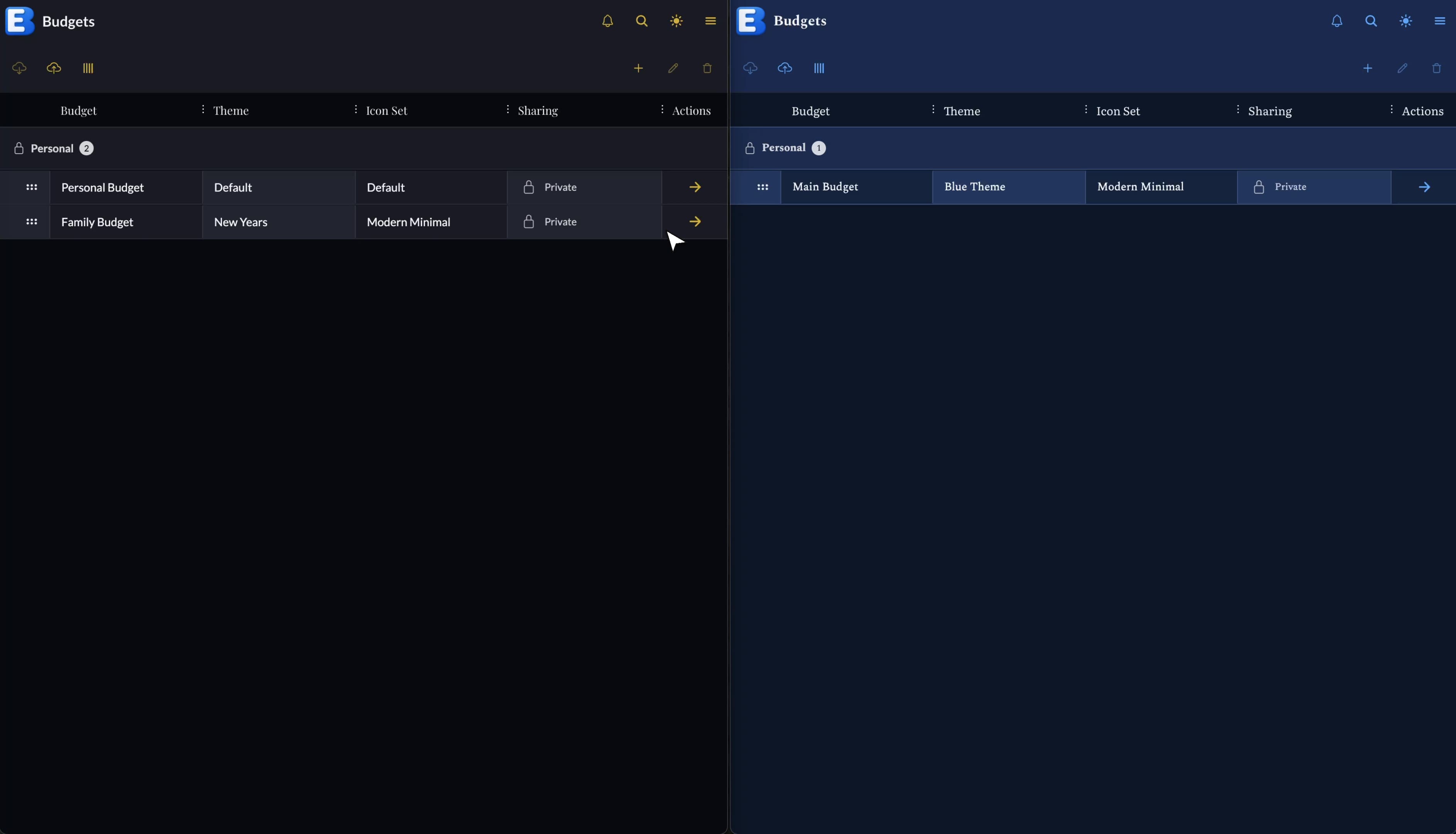 Your custom themes and icons apply to the shared budget. Everyone sees the budget exactly as you have designed it. - Manage Access Anytime